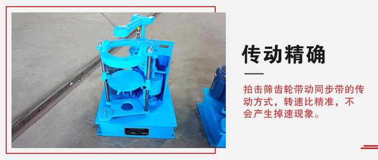 拍擊篩齒輪帶動同步帶的傳動方式,轉(zhuǎn)速比精準(zhǔn),不會產(chǎn)生掉速現(xiàn)象。